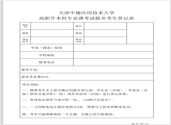 注:1.考生登记表样表,报名系统里下载
